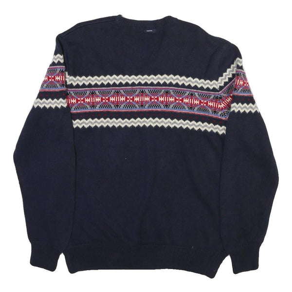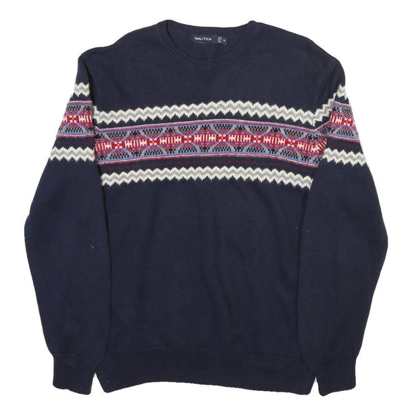 NAUTICA Mens Navy Blue Patterned Jumper Crew Neck Basic Knit L Cotton Blend