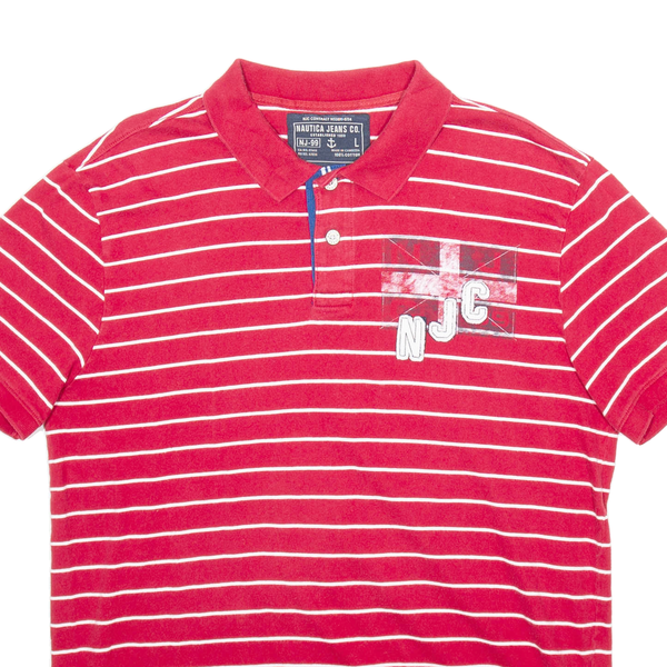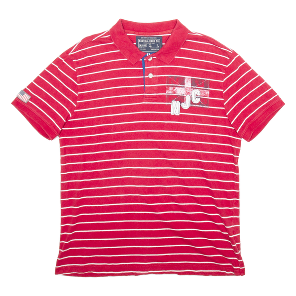 NAUTICA Mens Polo Shirt Red Striped Short Sleeve L