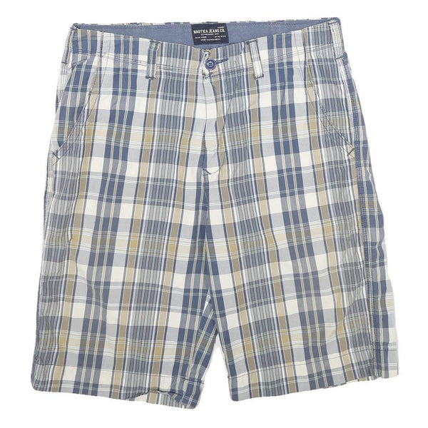 NAUTICA Mens Shorts Blue & Beige Check L W34 Cotton Casual Comfortable