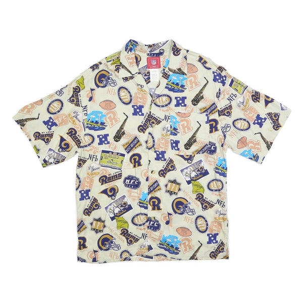 NFL Mens Cream St Louis Rams Rayon Shirt M Vintage Football Logos