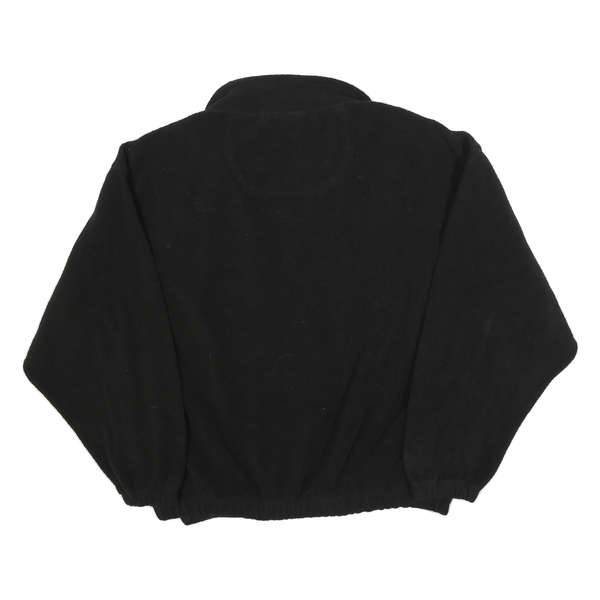 This womens NFL pullover jumper features a deep black colour with a small orange 'C' logo on the left chest, representing a team insignia. It has a short quarter zip closure at the crew neckline, adding a sporty touch. The jumper is made from soft polyester fabric that offers warmth and comfort.