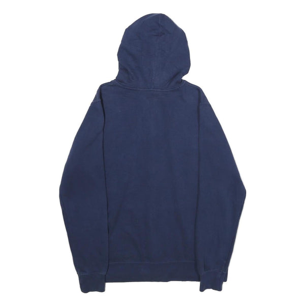 The hoodie fits regularly, extending to hip length and features a relaxed cut for ease of movement and layering. It is a versatile staple with a sporty vibe, suitable for casual outings or relaxing days. The navy blue base colour complements the team branding prominently displayed on the chest.