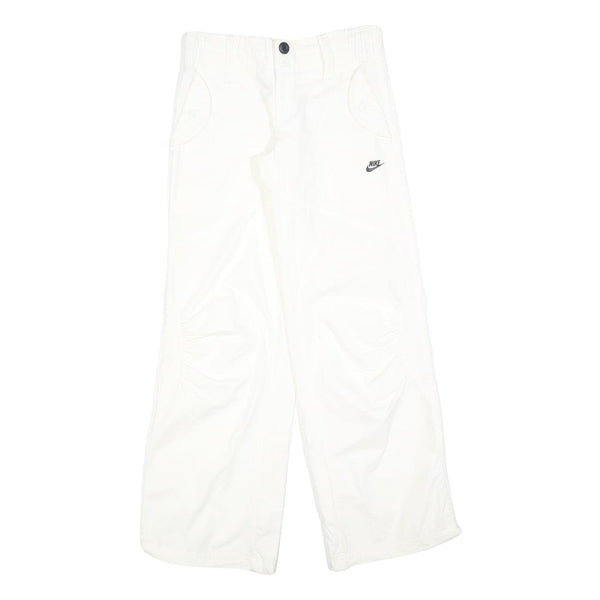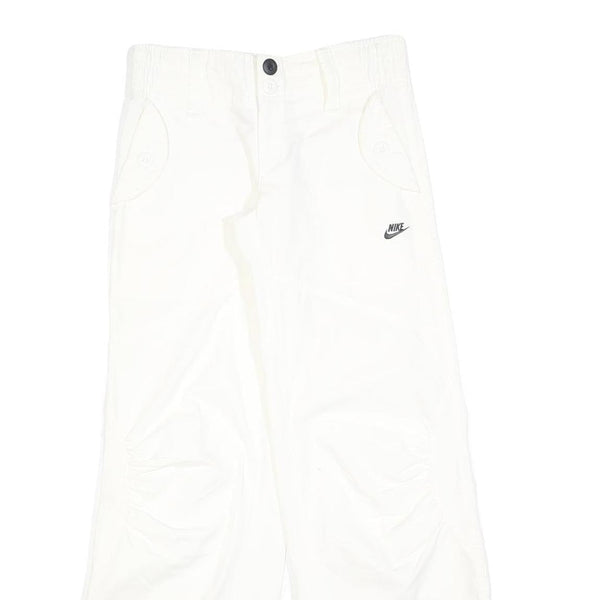 NIKE Girls Cotton Blend White Relaxed Wide-Leg Trousers W27 L30 Casual