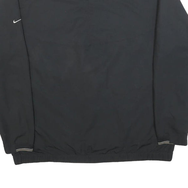This Nike Mens sweatshirt is made from smooth black polyester fabric, featuring a lightweight feel ideal for layering or active wear. It has long sleeves with subtle striping detail at the cuff edge and an elasticated hem for a secure fit.