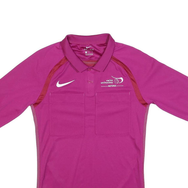 NIKE Mens Pink Referee Swiss Unihockey Short Sleeve Polo Shirt S Official