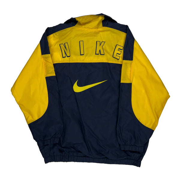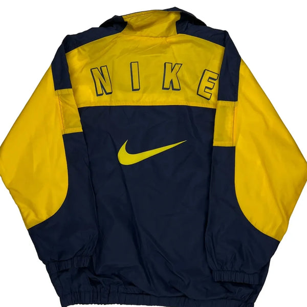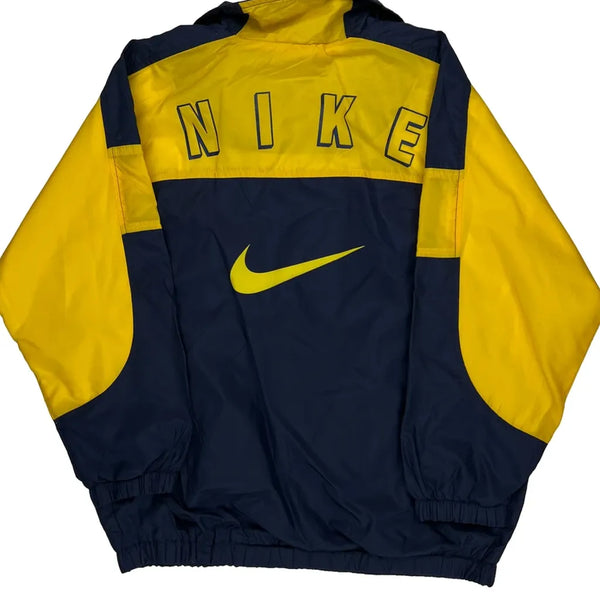 Vintage Nike Windbreaker In Navy And Yellow With Spellout Logo On Back.