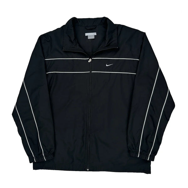 Black Windbreaker With White Stripes, No Visible Marks Or Faults.
