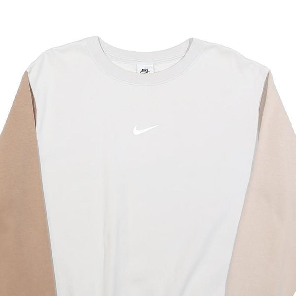 NIKE Womens White & Beige Sweatshirt Crew Neck M Cotton Blend Sporty