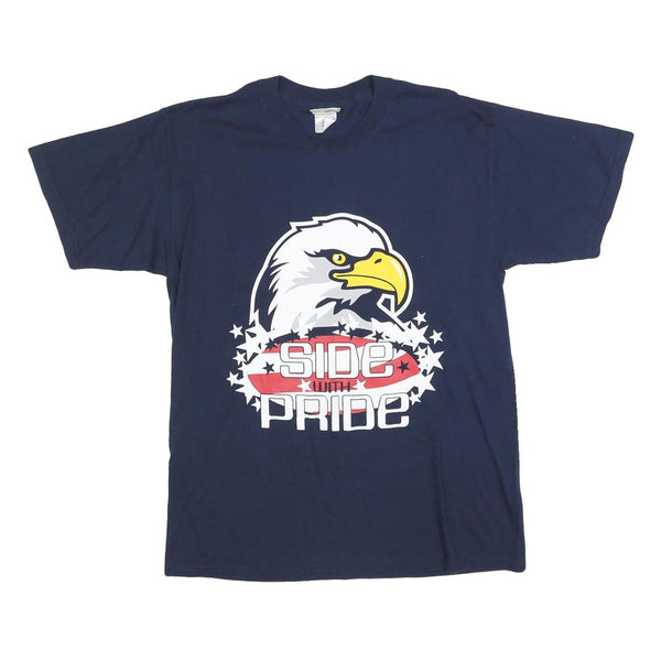 This OARSMAN Mens T-Shirt features a striking graphic of a white eagle head with a yellow beak above the words "SIDE WITH PRIDE" in bold white letters framed by red and white stars on a navy blue background. The shirt is made from a comfortable cotton blend fabric, offering a soft feel with some stretch. It has a classic short sleeve design with a crew neck, making it a versatile piece suitable for casual wear.