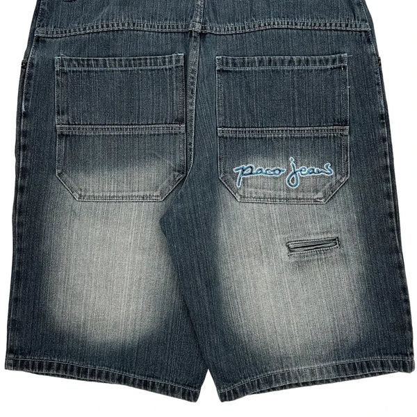 Paco Denim Shorts, fit a 36″ Waist and 11″ inseam.