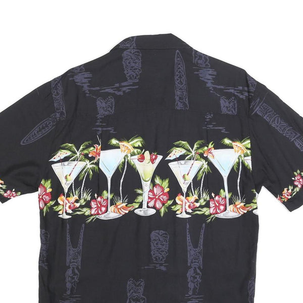 PARADISE FOUND Mens Black Rayon Cocktail Print Shirt S Vacation Party Summer