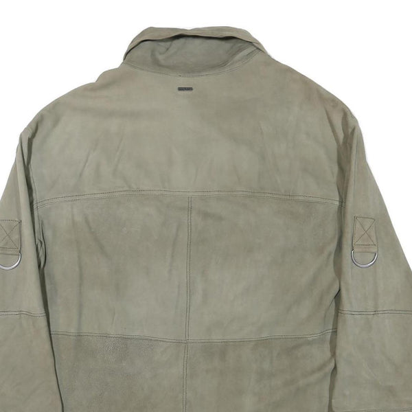 PEPE JEANS Mens Grey Leather Utility Jacket L Suede Four Pocket Zip Closure