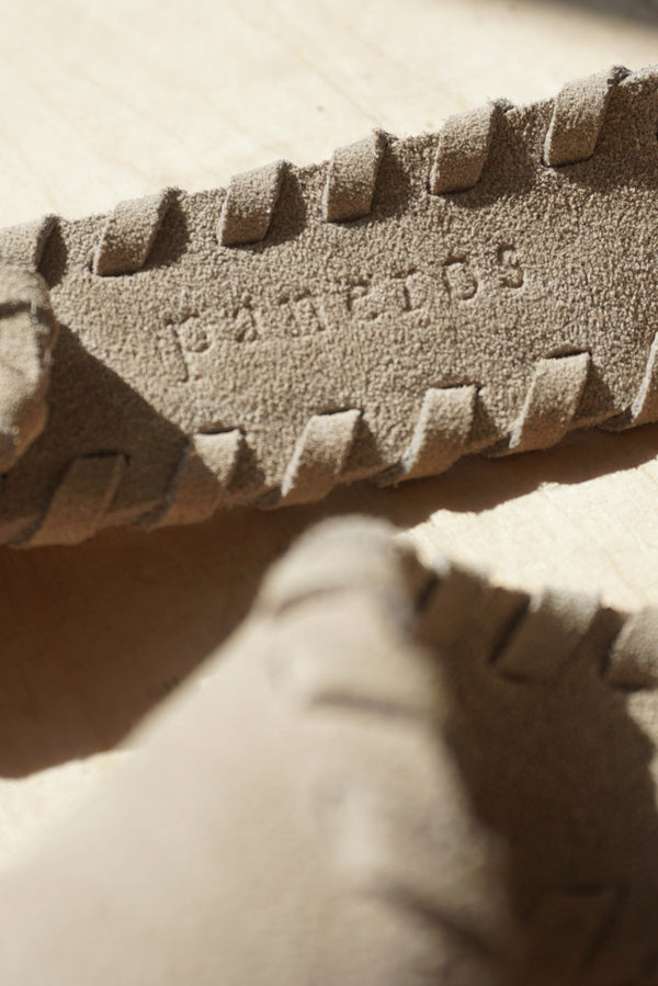 Responsibly Handcrafted by artisans using locally sourced cow suede.