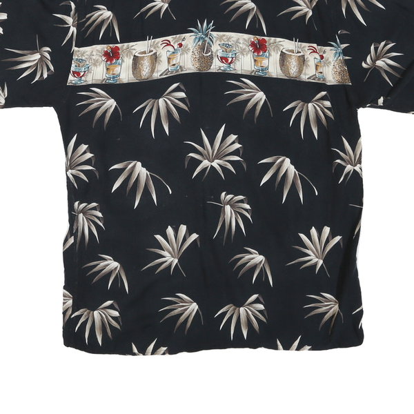 PIERRE CARDIN Mens Black & Beige Hawaiian Shirt L Cotton Blend Short Sleeve