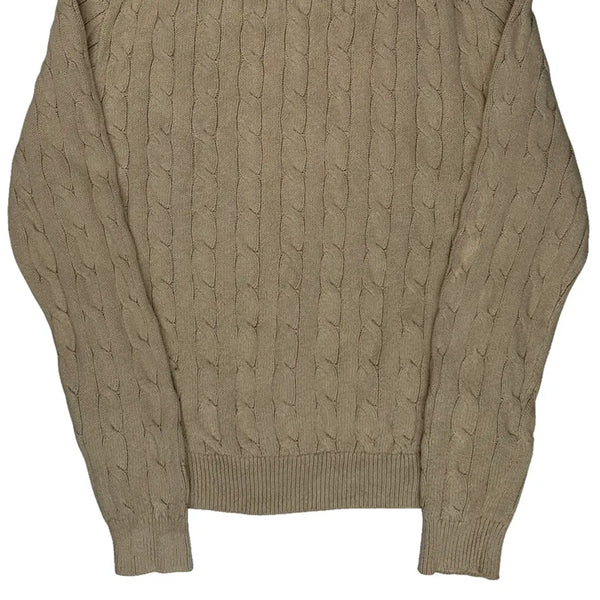 Beige Cable Knit 1/4 Zip Jumper With Small Logo Embroidery