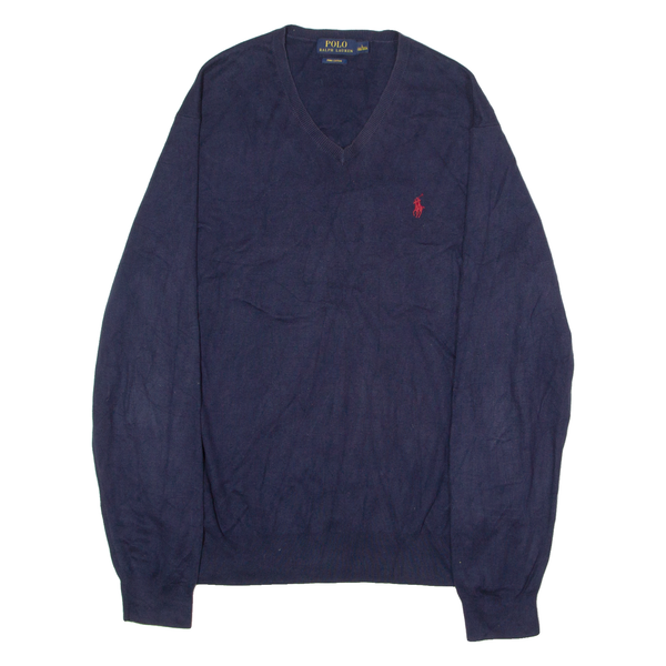 POLO RALPH LAUREN Mens Jumper Blue V-Neck Tight Knit L