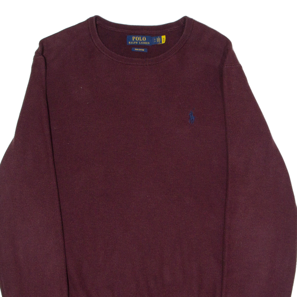 POLO RALPH LAUREN Mens Jumper Maroon Crew Neck Tight Knit M