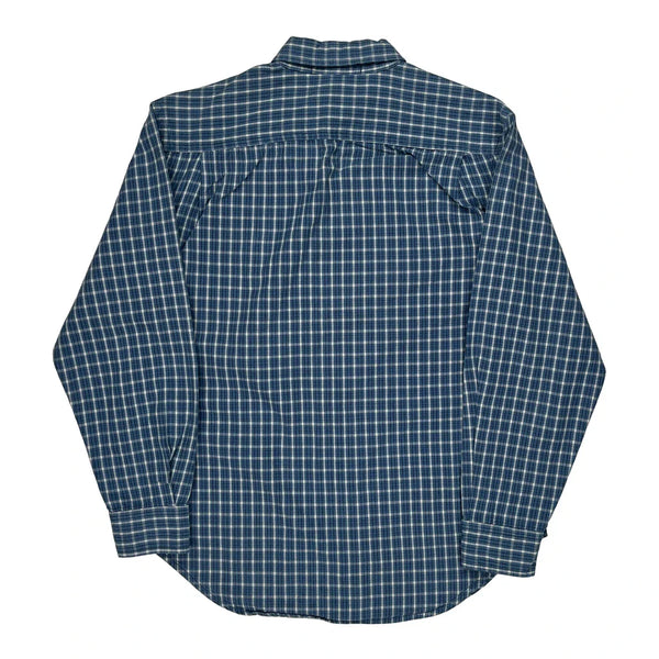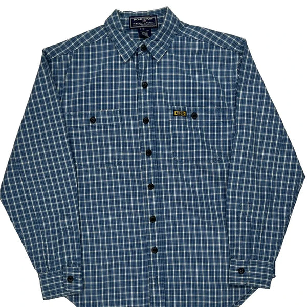 Checked Blue Shirt With Button-Down Front And Chest Pockets.