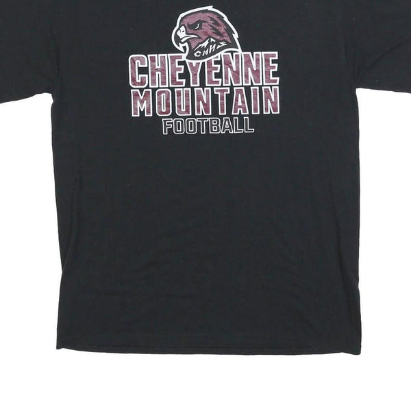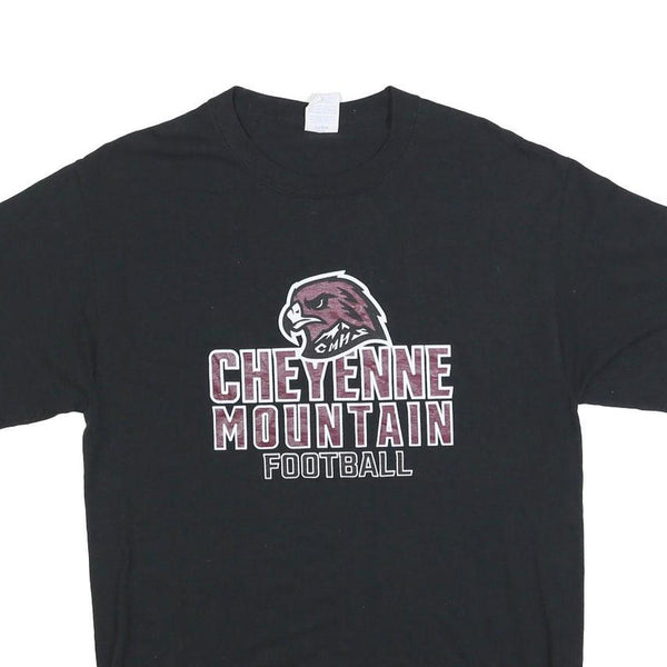 PORT & COMPANY Mens Black Cheyenne Mountain Football Graphic T-Shirt M Crew Neck
