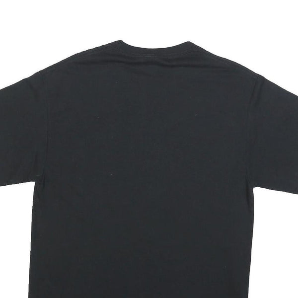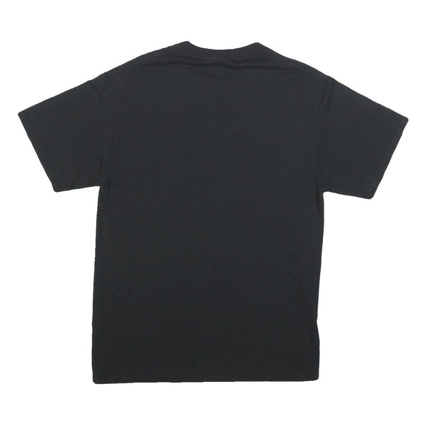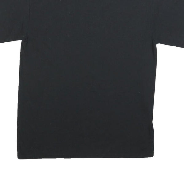 The T-shirt is solid black at the back with no additional prints or details. It is a medium size and fits true to size with a regular cut, perfect for football supporters or casual wearers alike.