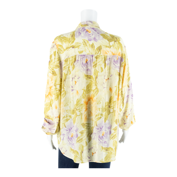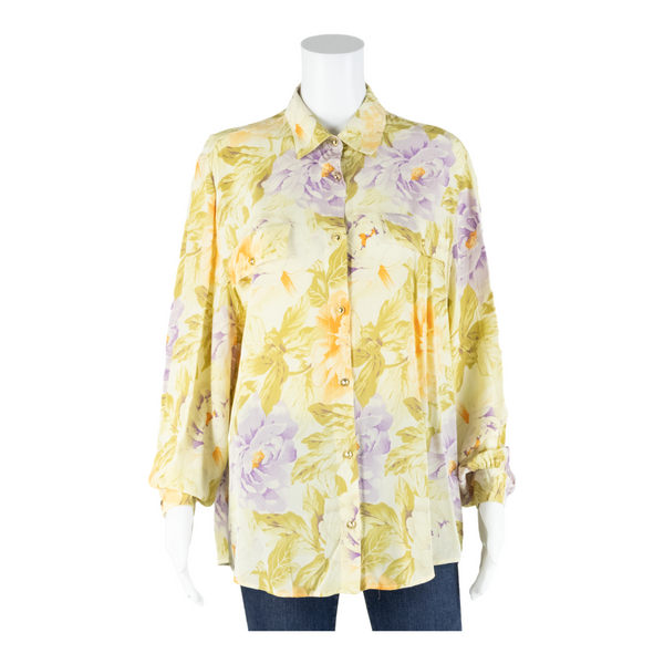 Primavera womens printed shirt yellow collared long sleeve viscose floral l