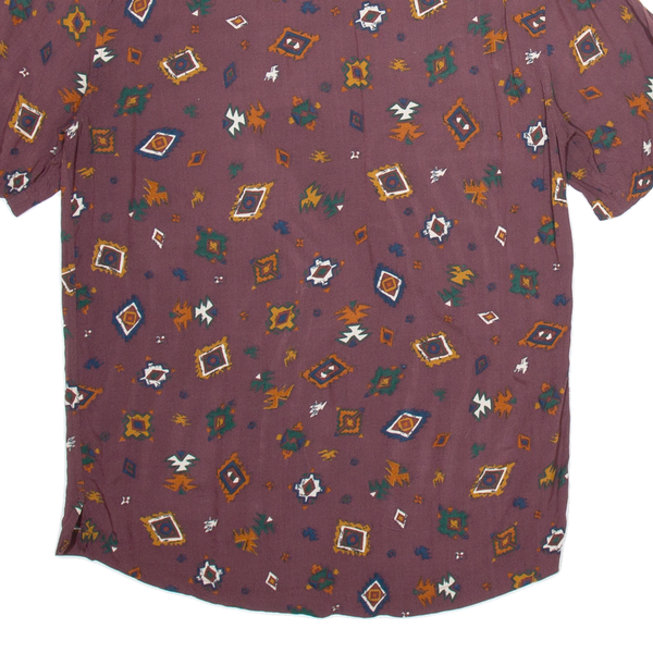 PULL & BEAR Mens Shirt Maroon Viscose Geometric S