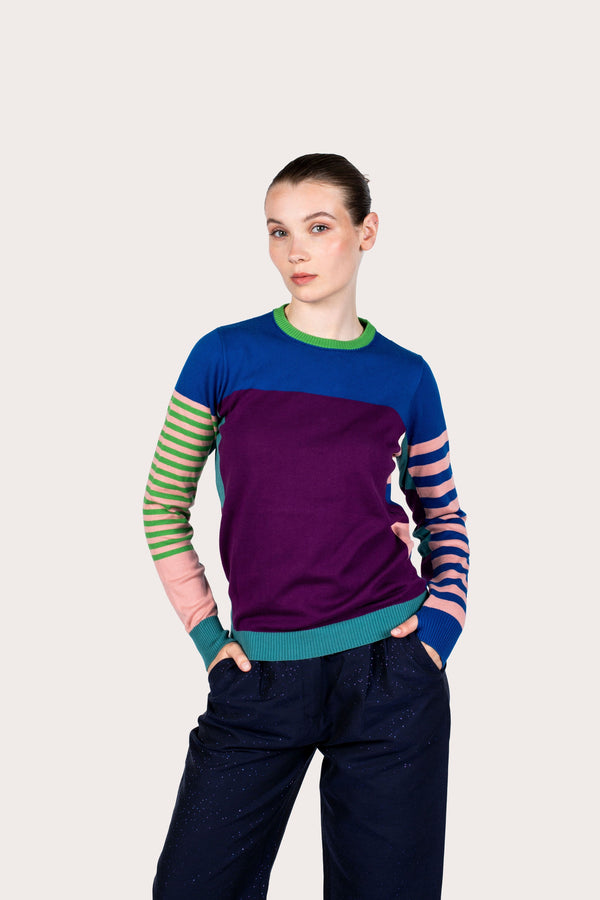 The Céline Blue sweater, your favorite piece from last season, is back in stock! It is a perfect revisitation of the French sailor top, in an eco-responsible and stylish version. Its bright colors are proof that responsible fashion is not just classic. The Italian workshop partner LO NEEL works with automatic machines from the 70s to preserve the beauty of craftsmanship.