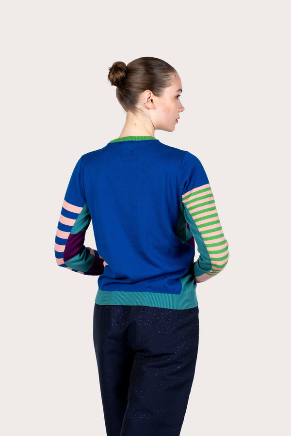 Inspired by traditional French striped sweaters and Indian colors, the Céline Blue sweater is a gem for winter and mid-season. Made in recycled cotton and made with love in our workshop in Italy it is an original and committed sailor top by LO NEEL.