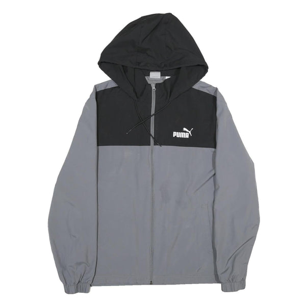 PUMA Mens Black & Grey Hooded Zip Jacket M Polyester Sportswear Casual Outerwear