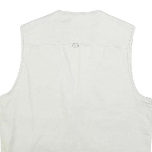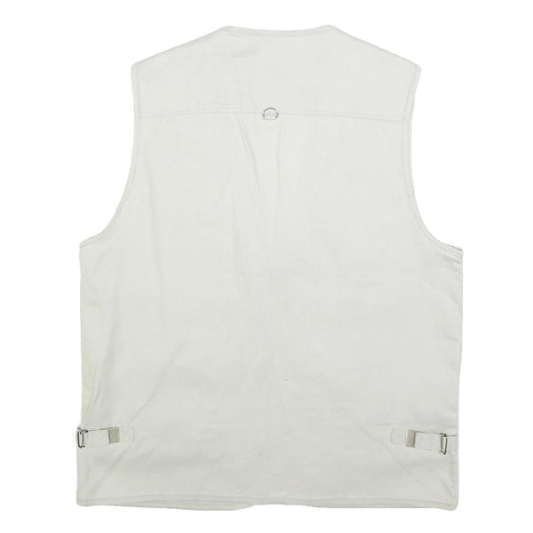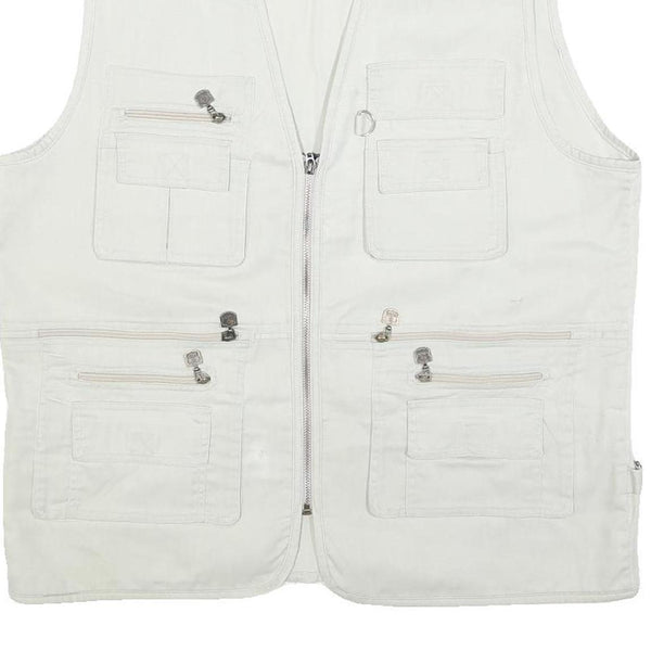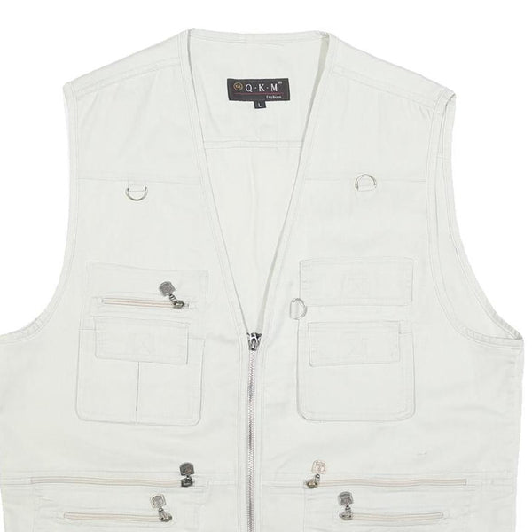 QKM Mens White Cotton Blend Utility Jacket L Multi Pocket Zip Casual