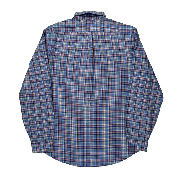 Blue Checked Shirt With Button-Down Collar And Embroidered Logo