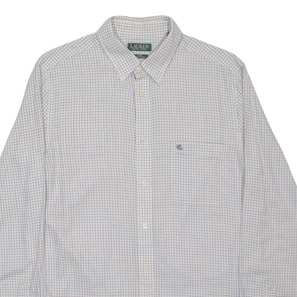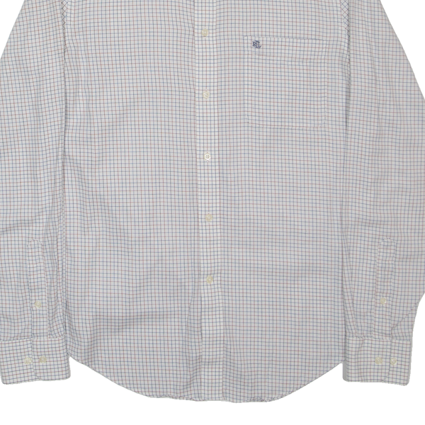 RALPH LAUREN Fitted Stretch Mens Shirt White Gingham Long Sleeve S