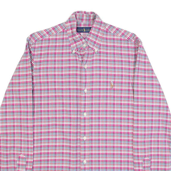 RALPH LAUREN Mens Pink & Blue Check Shirt XS Button-Down Collar Long Sleeve