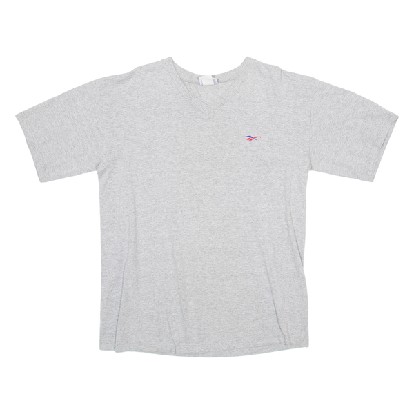 REEBOK Mens T-Shirt Grey V-Neck M