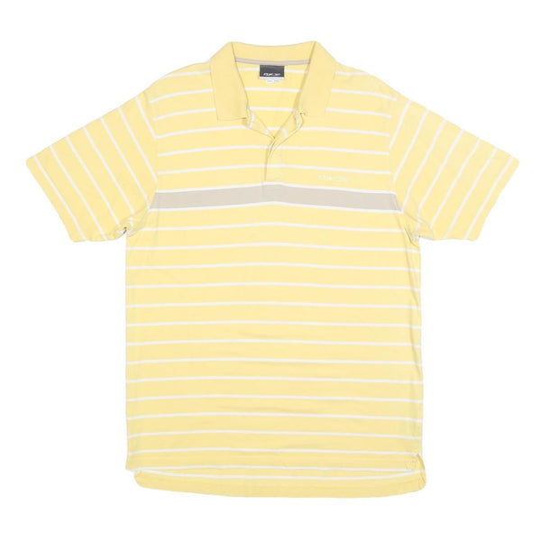 REEBOK Mens Yellow & White Striped Short Sleeve Polo Shirt XL Cotton Blend