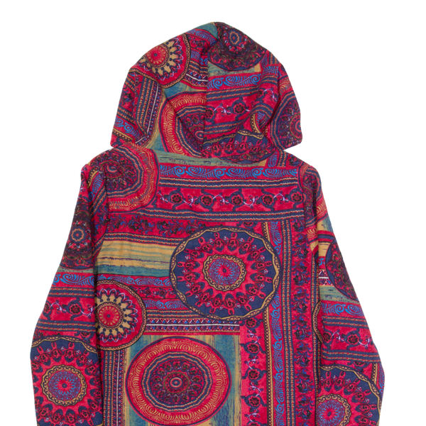 Sherpa Lined Womens Jacket Red Hooded Crazy Pattern S
