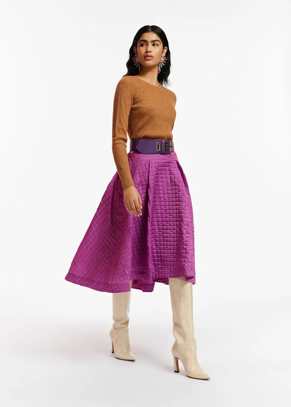 Designed with a fitted waistband, this midi-length skirt falls to a voluminous A-line shape accentuated by the box pleat detai