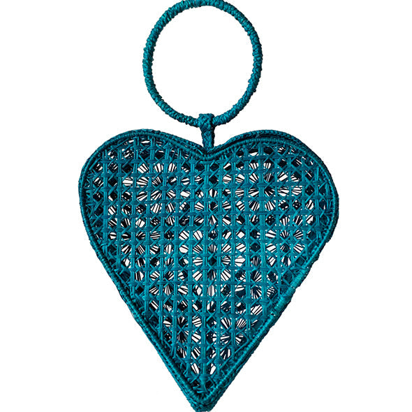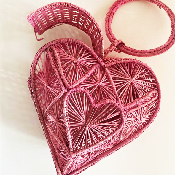 Hand-woven bag in iraca palm designed with a heart shape, with a handle. Carry this turquoise bag with a beautiful dress to exude ladylike charm