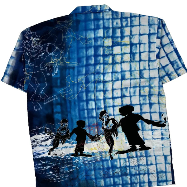 Blue Hawaiian Shirt With Graphic Design