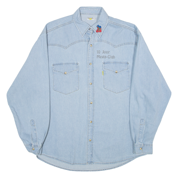 SWITCHER 10 Joor Mega-Club Mens Denim Shirt Blue 90s Long Sleeve M