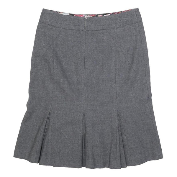 TED BAKER Womens Grey Pleated Midi Woven Cotton Blend Skirt S Elegant Workwear