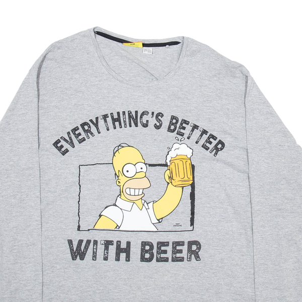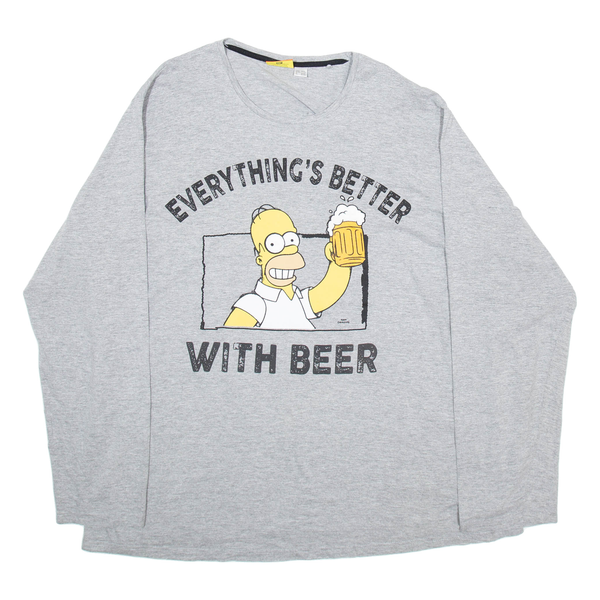 THE SIMPSONS Mens T-Shirt Grey Long Sleeve 2XL
