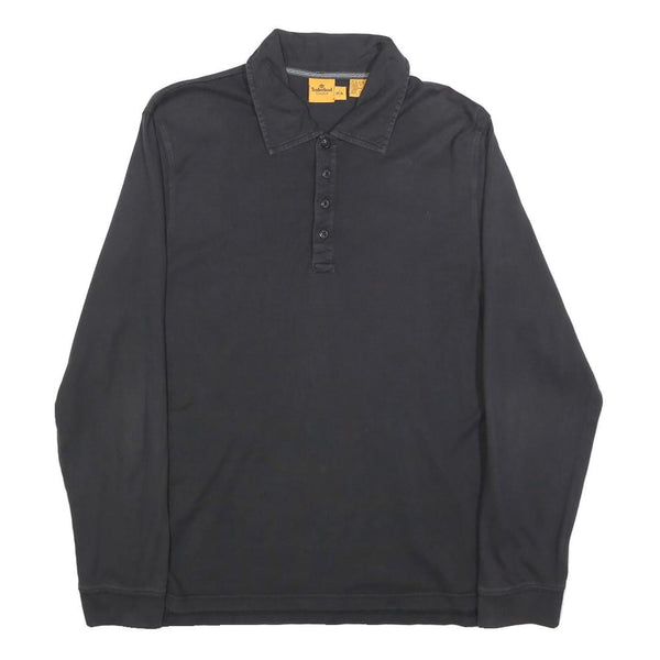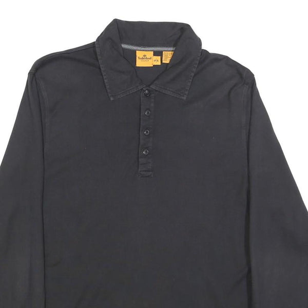 TIMBERLAND Mens Black Long Sleeve Plain S Cotton Blend Polo Shirt Casual