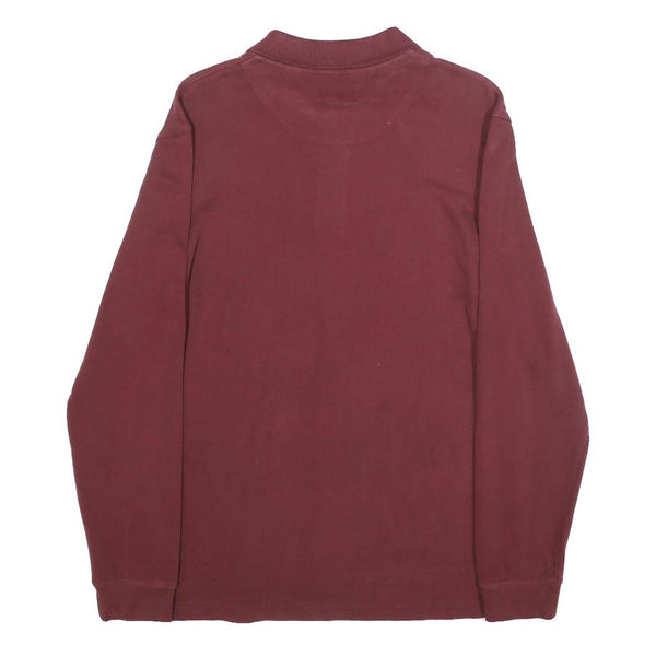 TIMBERLAND Mens Maroon Long Sleeve Plain Polo Shirt S Cotton Blend Classic