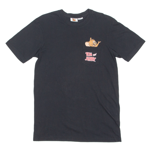 TOM & JERRY Mens T-Shirt Black Crew Neck S