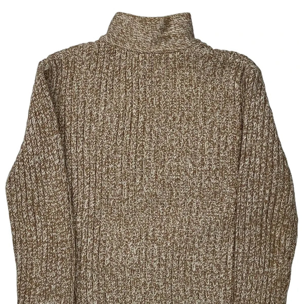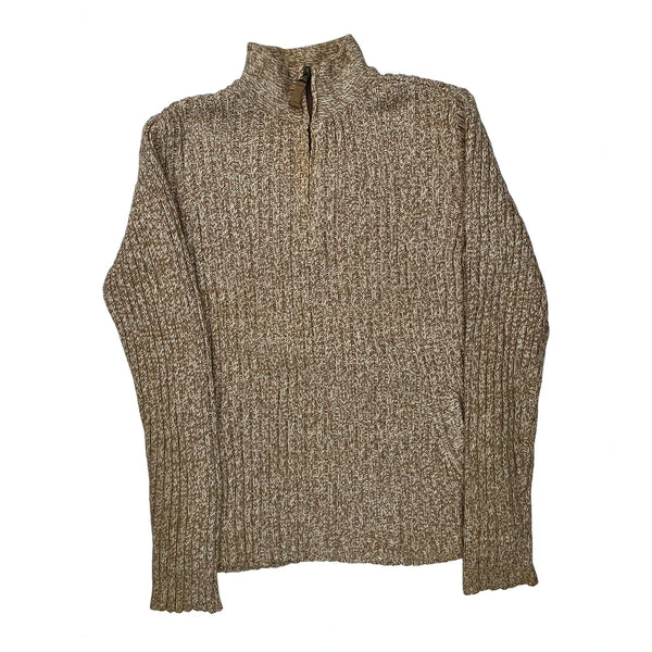Beige Marled Knit Top With A High Neck And Half-Zip Closure.