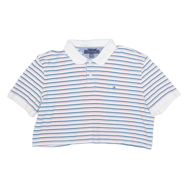 TOMMY HILFIGER Cropped Womens Polo Shirt White Striped L