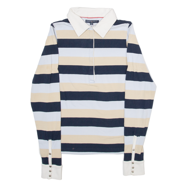 TOMMY HILFIGER Golf Womens Polo Shirt Blue Striped Long Sleeve S