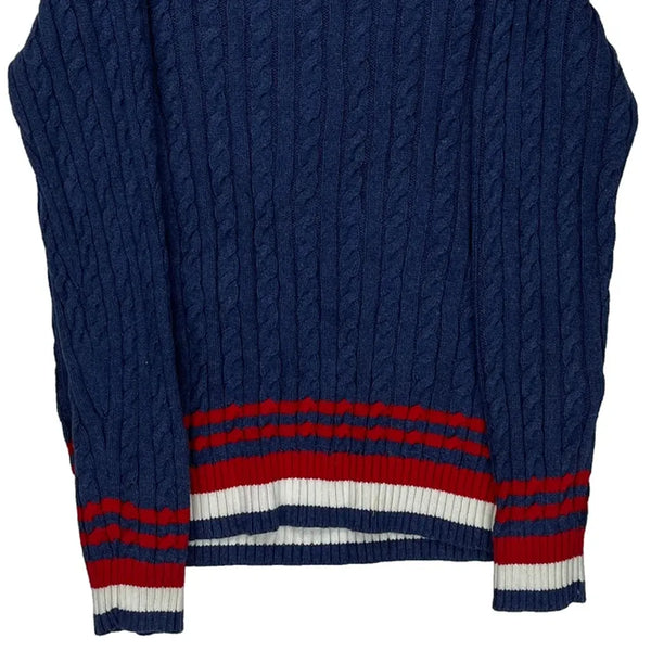 Blue Cable Knit With Red And White Stripes On Hem And Cuffs