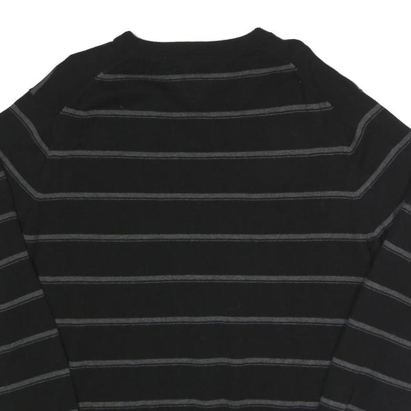 TOMMY HILFIGER Mens Black & Grey Striped Pattern Cotton Jumper V-Neck Basic Knit